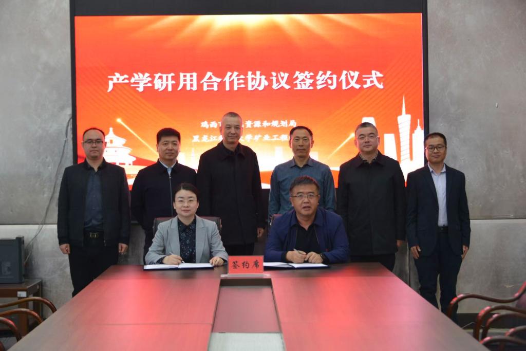 4月23日,鸡西市自然资源和规划局局长张旭一行,到校与xc体育开展合作交流并签订产学研用合作协议,公司党委书记赵喜江、经理肖福坤、副经理商宇航出席会议。