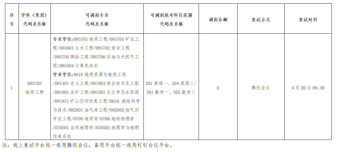 xc体育2025年硕士研究生考试(资源与环境-地质工程)第五次调剂公告