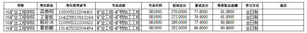 xc体育2025年硕士研究生招生考试(矿业工程)第五次调剂待录取名单