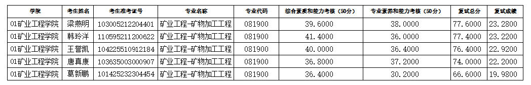 xc体育2025年硕士研究生招生考试(矿业工程)第五次调剂待录取名单