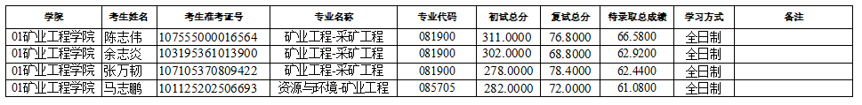 xc体育2025年硕士研究生招生考试(矿业工程、资源与环境-矿业工程)第三次调剂待录取名单