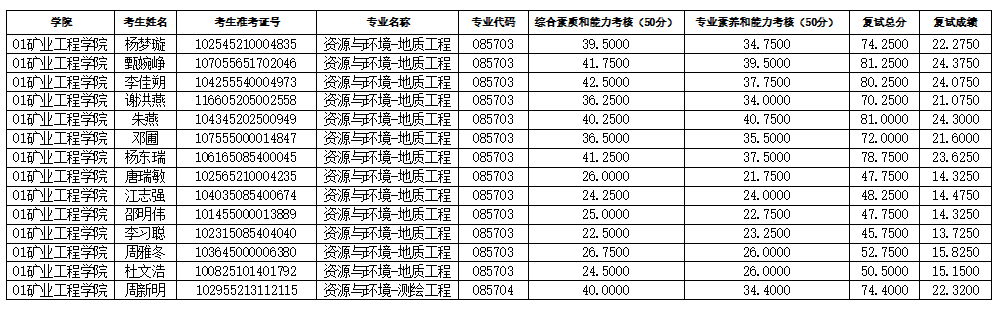 xc体育2025年硕士研究生招生考试(资源与环境-地质工程)第三次调剂及(资源与环境-测绘工程)第四次调剂复试成绩