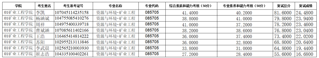 xc体育2025年硕士研究生招生考试(资源与环境-矿业工程)第二次调剂待录取名单