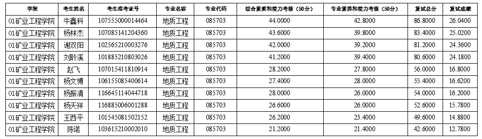 xc体育2025年硕士研究生招生考试(资源与环境-地质工程)第二次调剂复试成绩