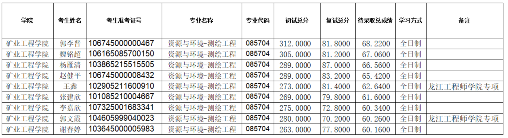 xc体育2025年硕士研究生招生考试(资源与环境-测绘工程)第一次调剂待录取名单