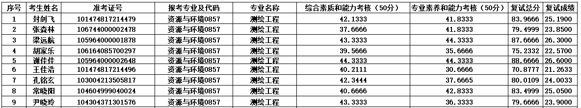 xc体育2024年硕士研究生招生考试测绘工程专业第一次调剂复试待录取考生名单