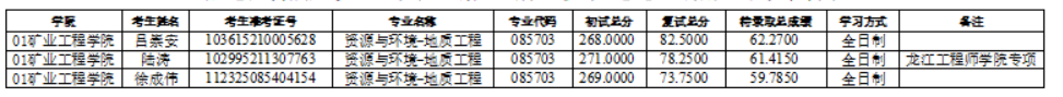xc体育2025年硕士研究生招生考试(资源与环境-地质工程)第六次调剂待录取名单