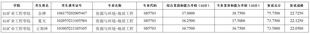 xc体育2025年硕士研究生招生考试(资源与环境-地质工程)第五次调剂待录取名单